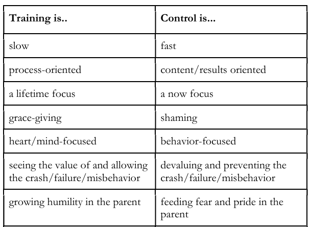 Consequences aren’t intended to control. Here is a chart that helps differentiate between training and control